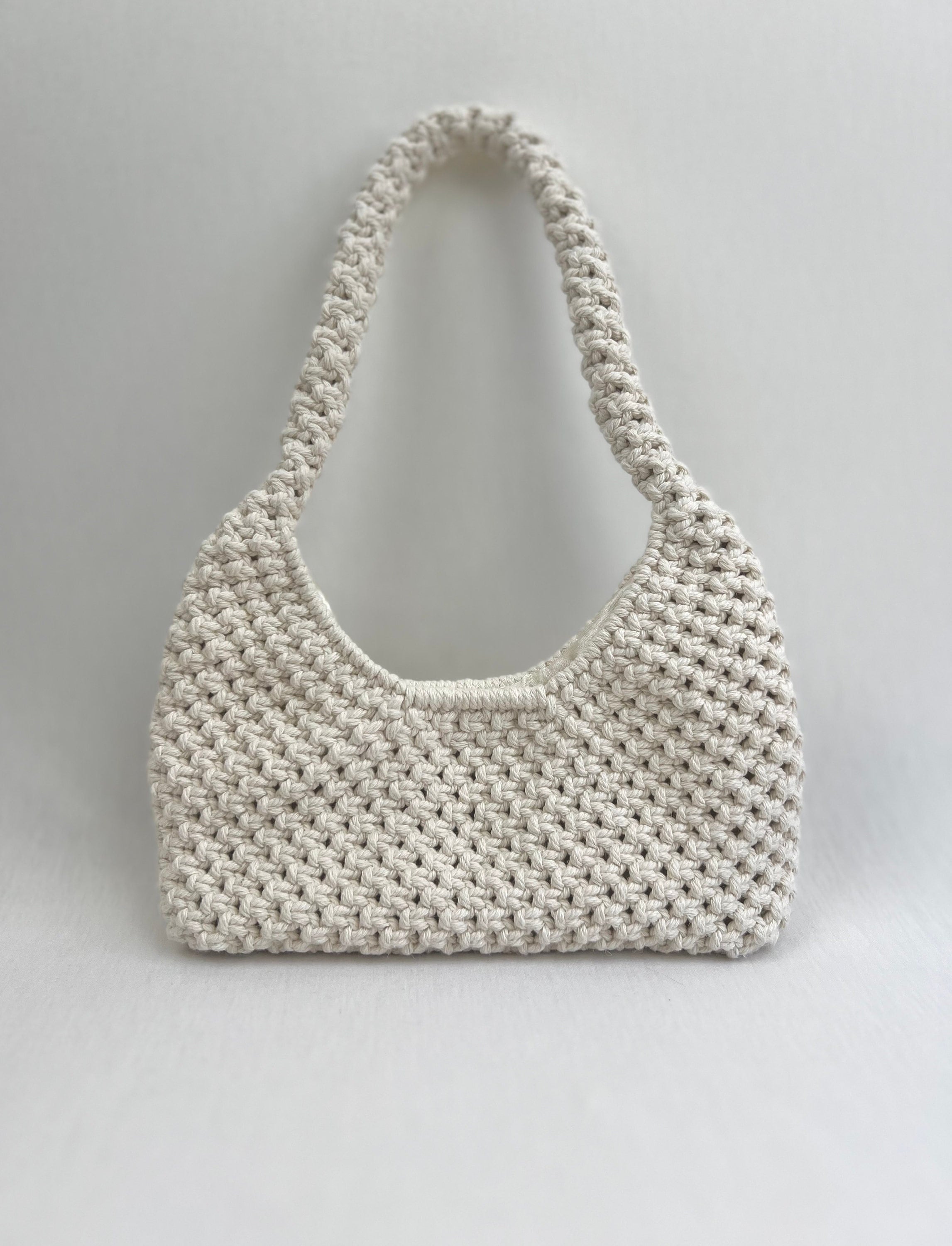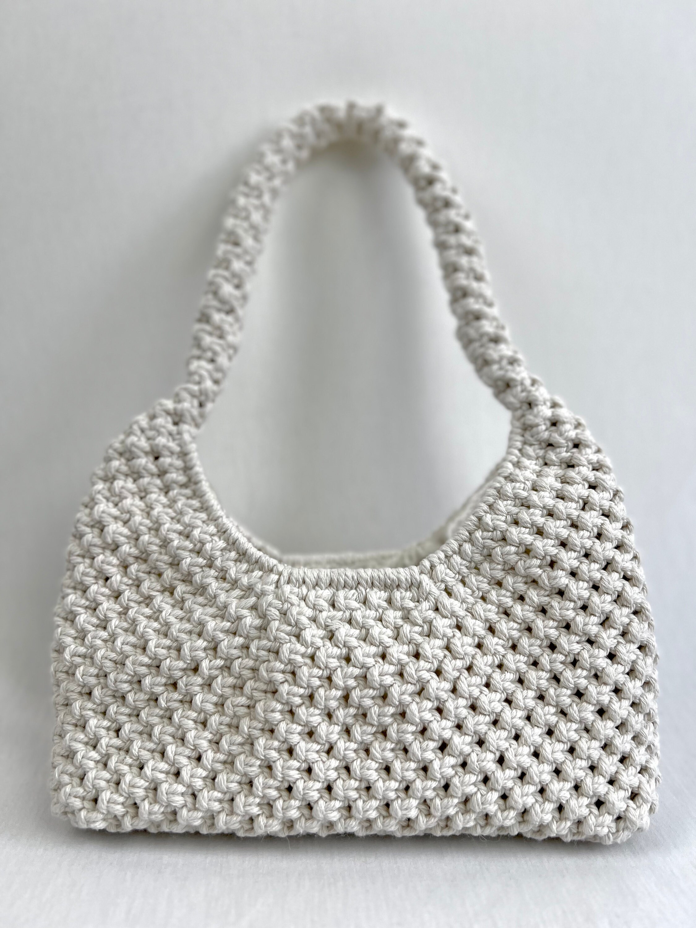 Very comfortable shoulder bag made with the macramé technique, with cotton thread, ivory color with internal lining and magnetic button closure.