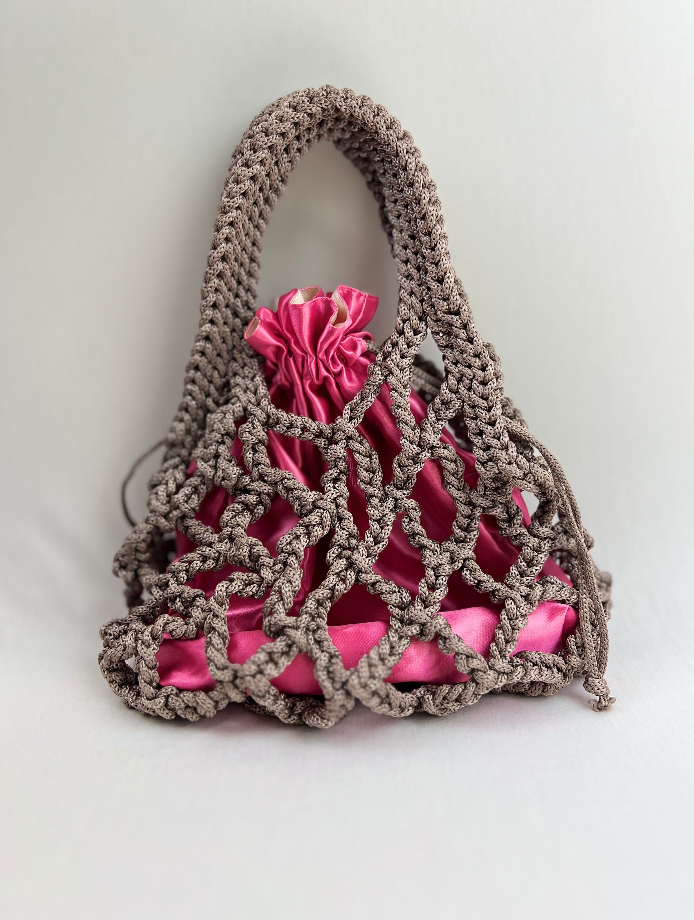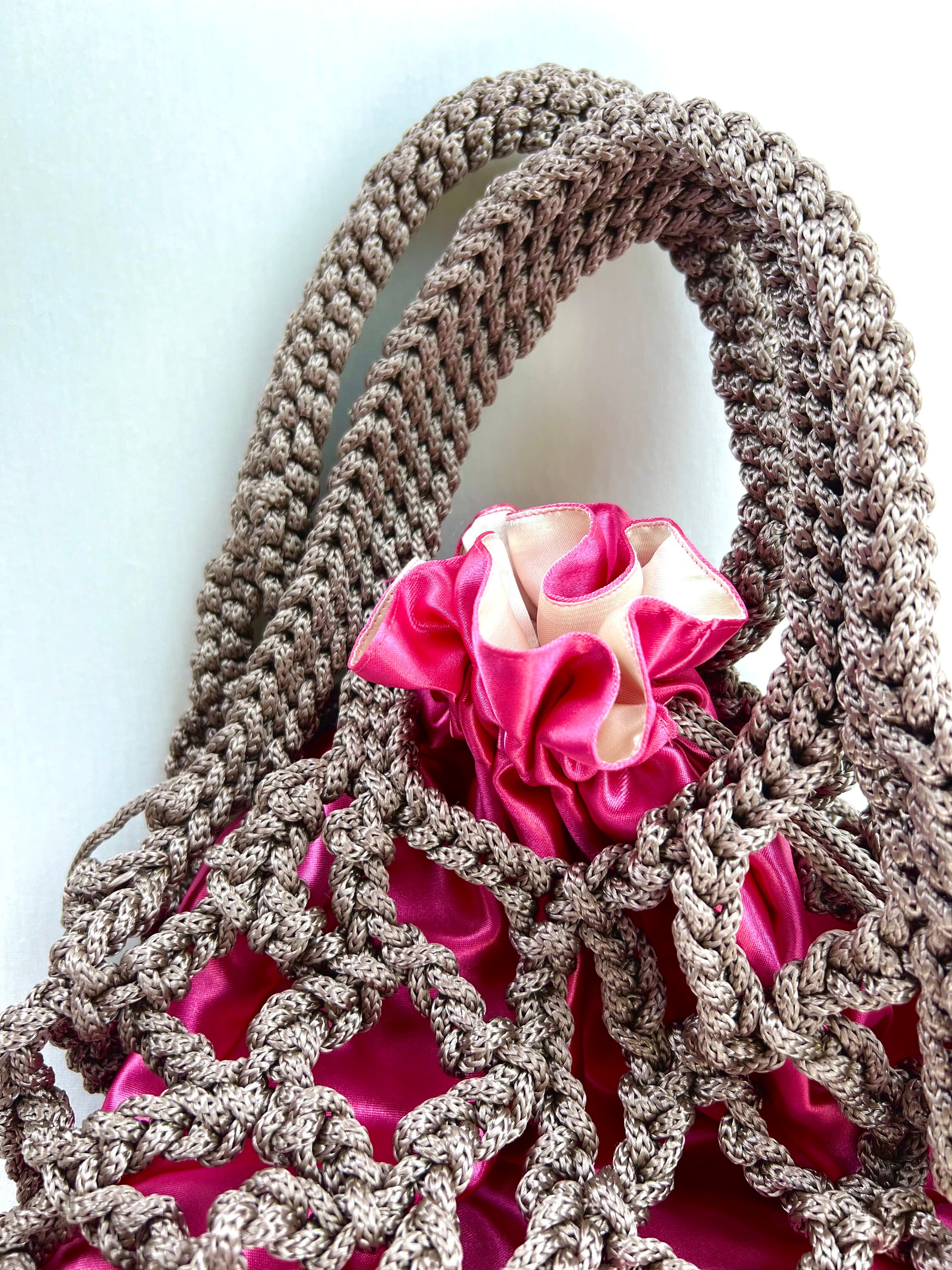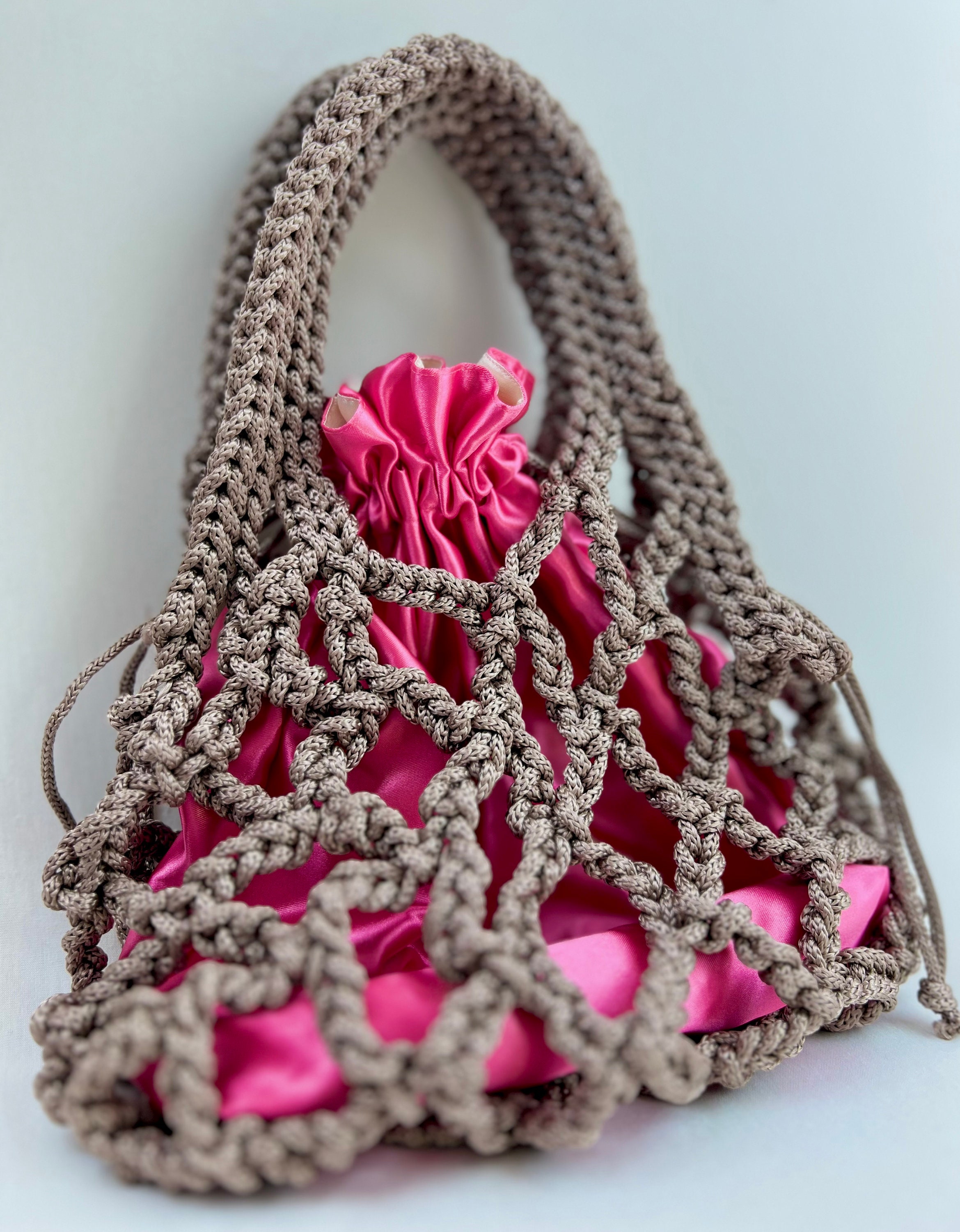 Bright mesh bag with removable inner pouch with drawstring closure.Bag made of durable neon pink satin fabric.Thick handle, soft and roomy.Size H38xL30cm