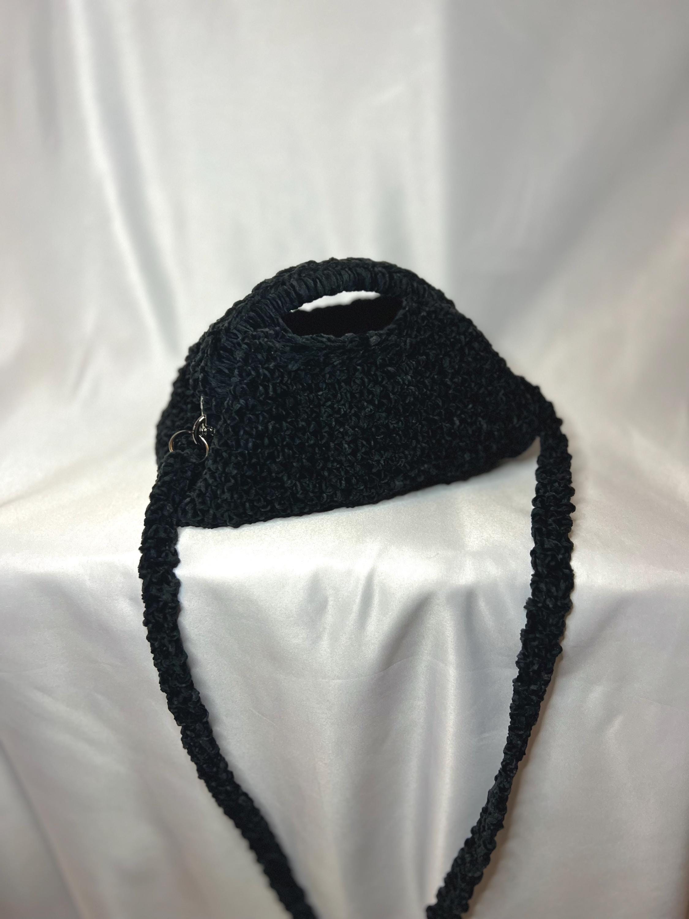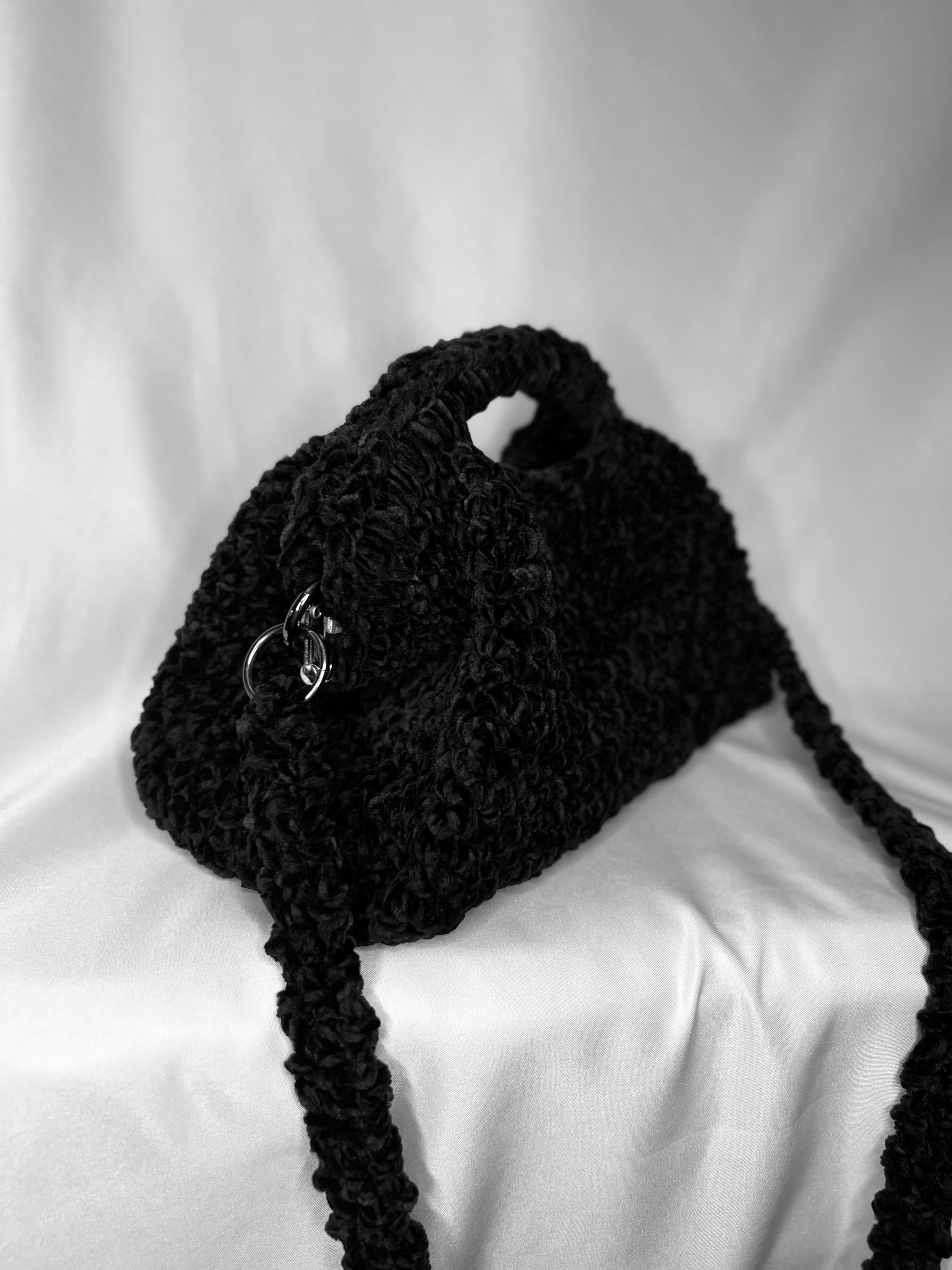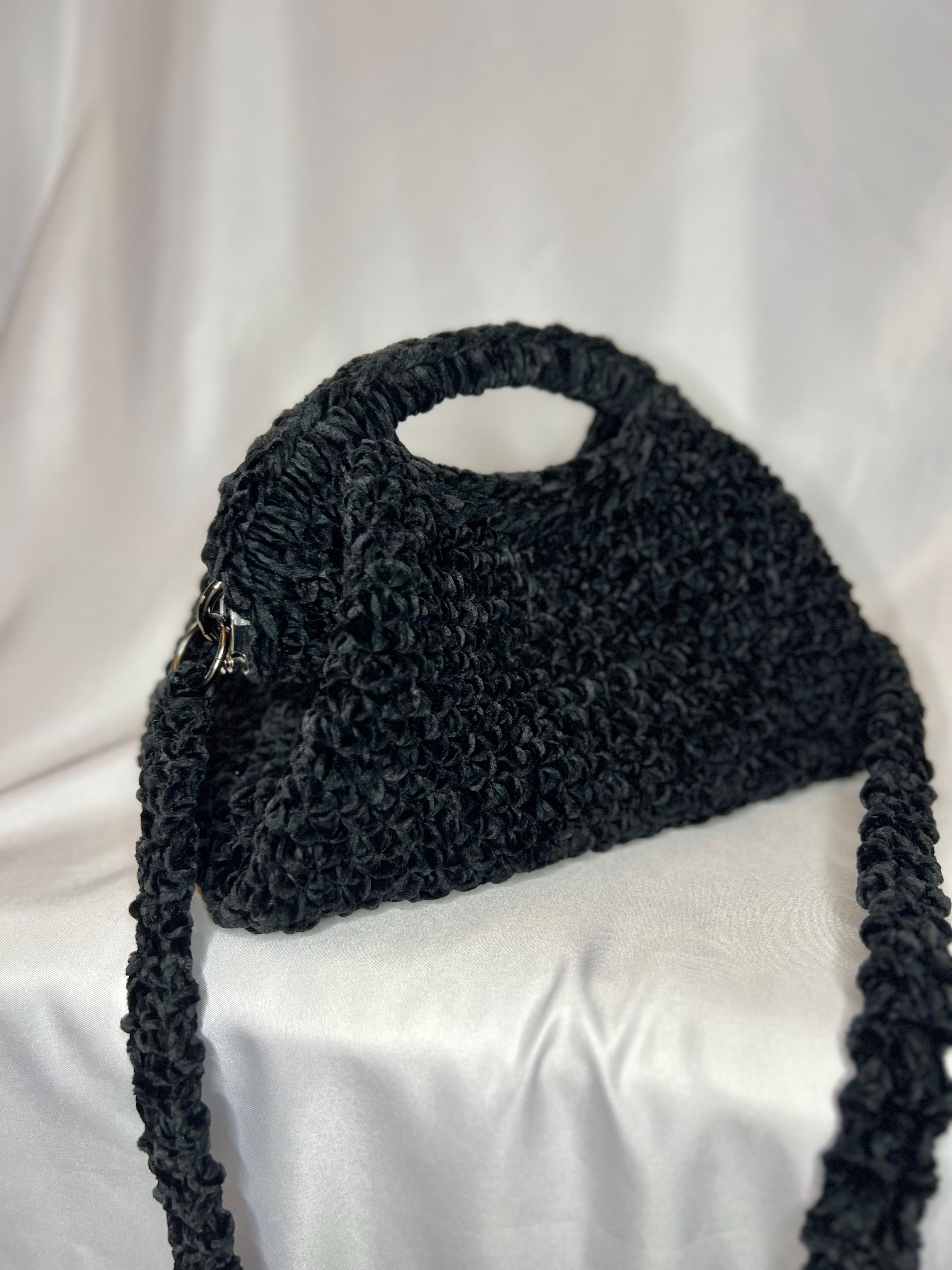 Clutch bag made with crochet with black velvet and chenille thread, click clack closure, elegant and soft, can be used both with the shoulder strap and as a clutch bag.Size 16 x 24 cmThe leather version is available to order