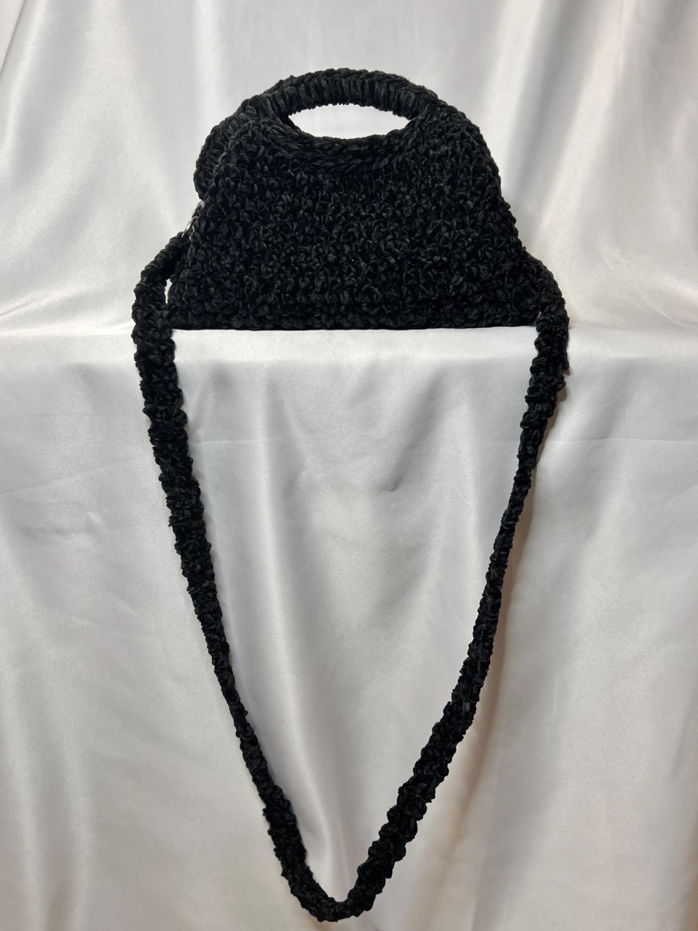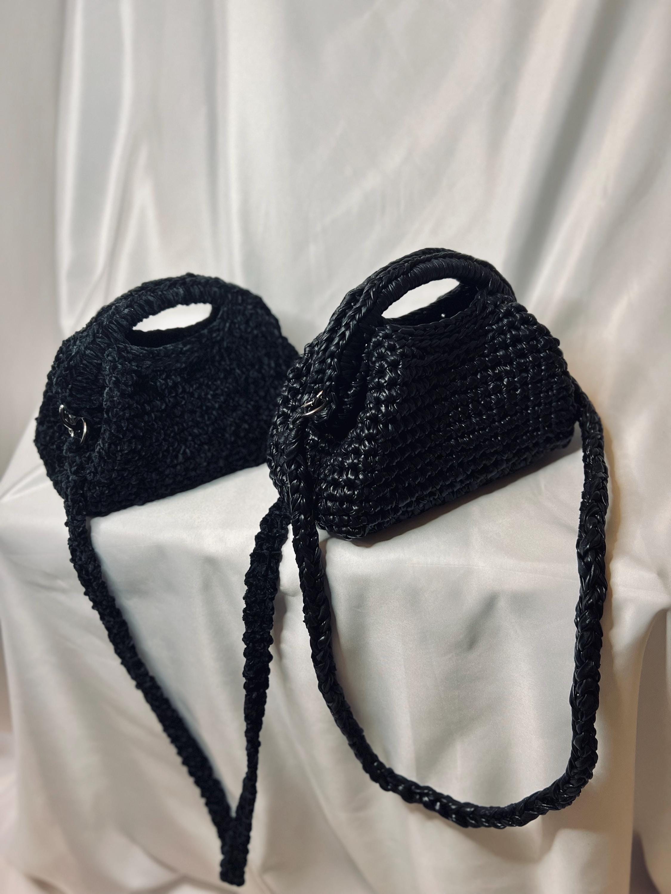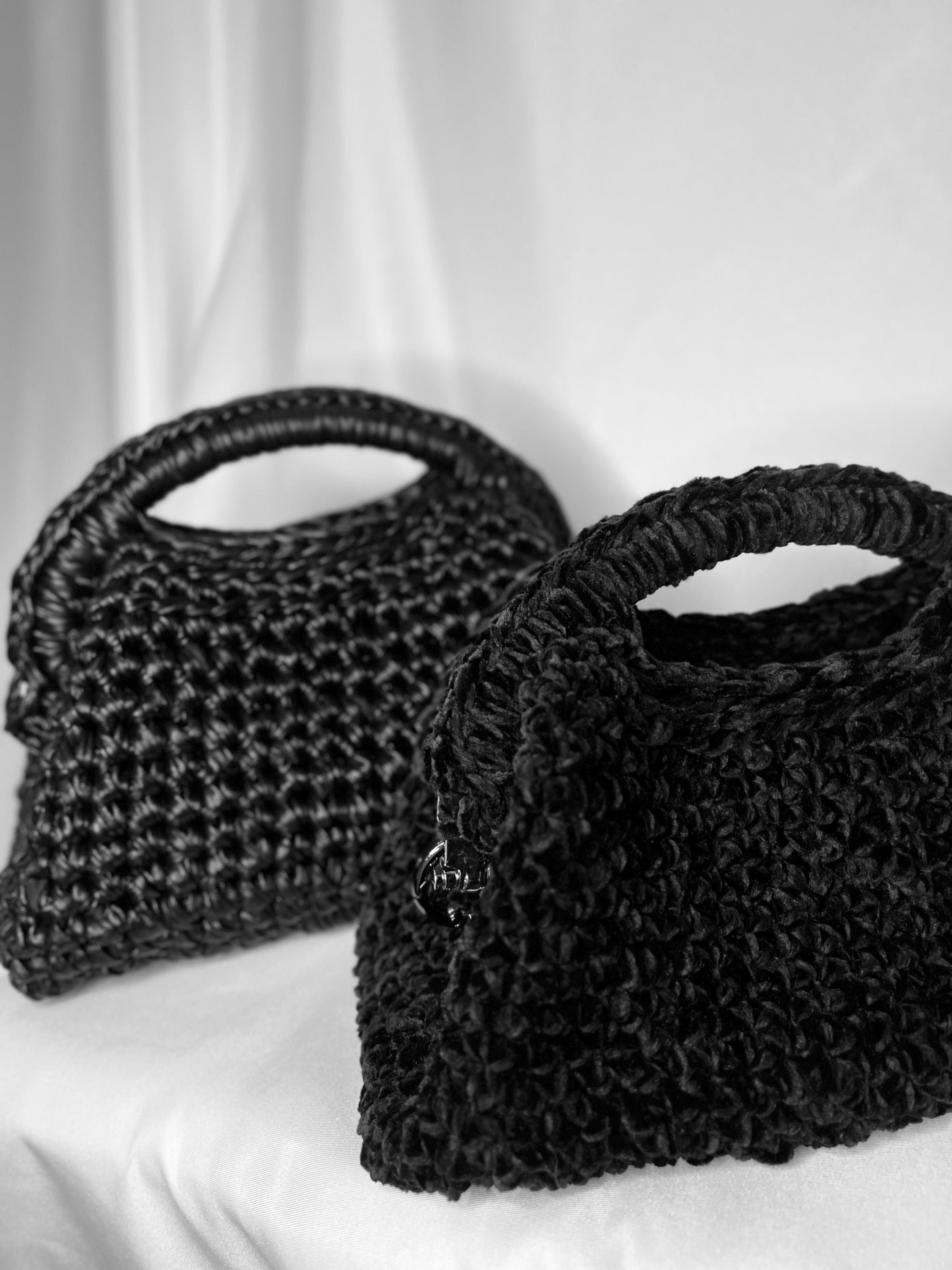 Clutch bag made with crochet with black velvet and chenille thread, click clack closure, elegant and soft, can be used both with the shoulder strap and as a clutch bag.Size 16 x 24 cmThe leather version is available to order