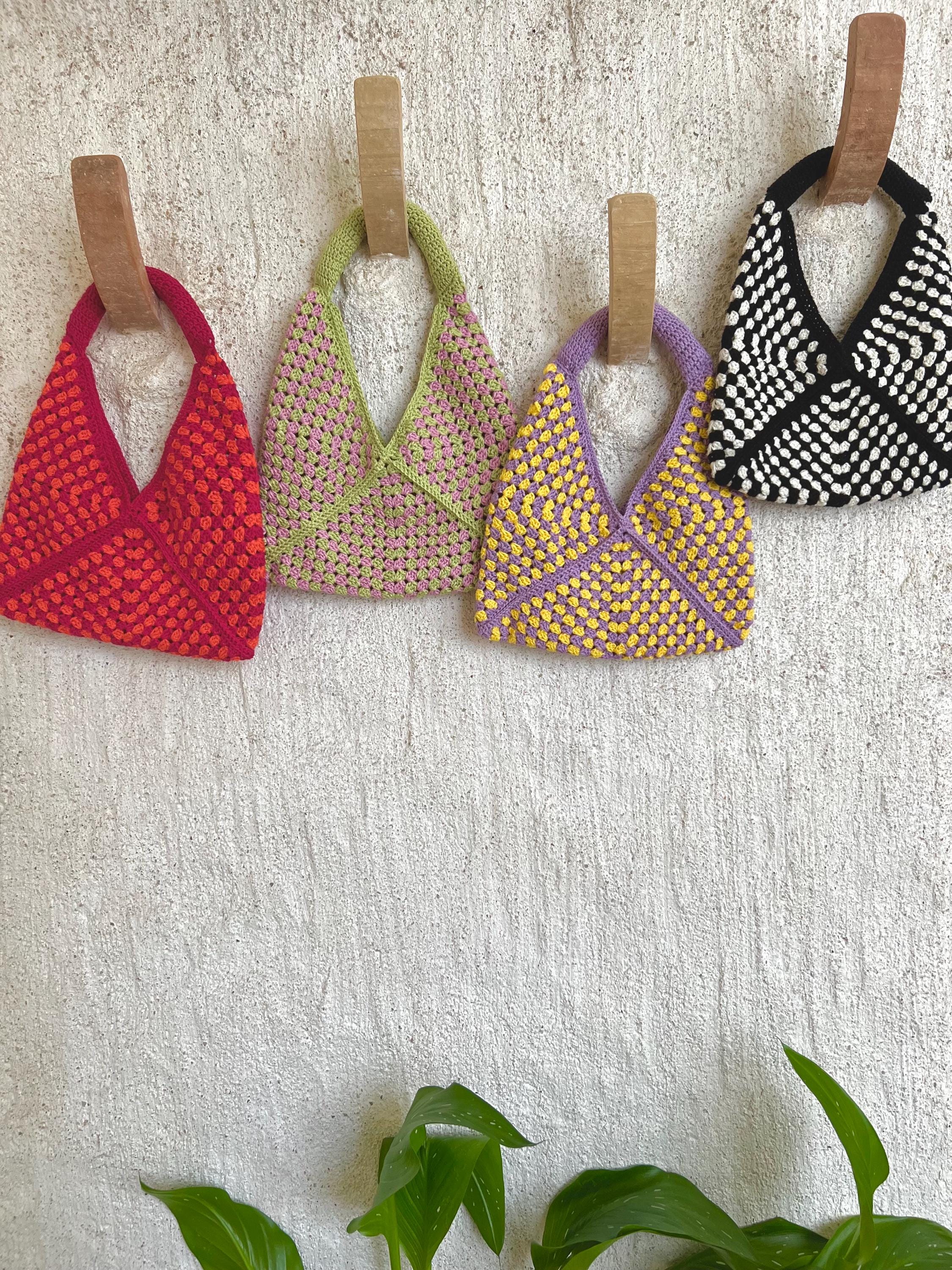 Beautiful summer bag available in various colors, crocheted with granny square, perfect for day and evening to add a pop of color to your outfits.