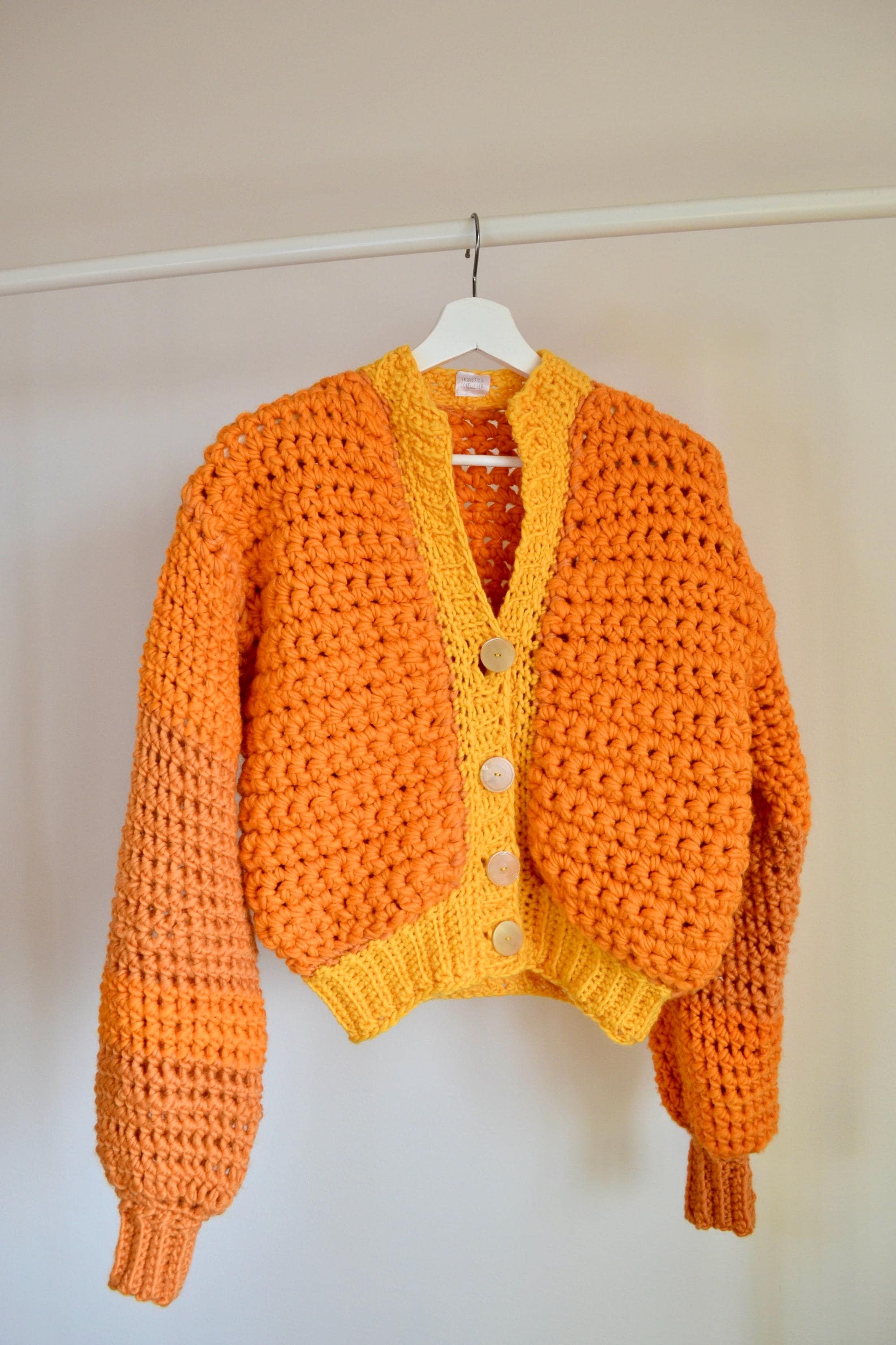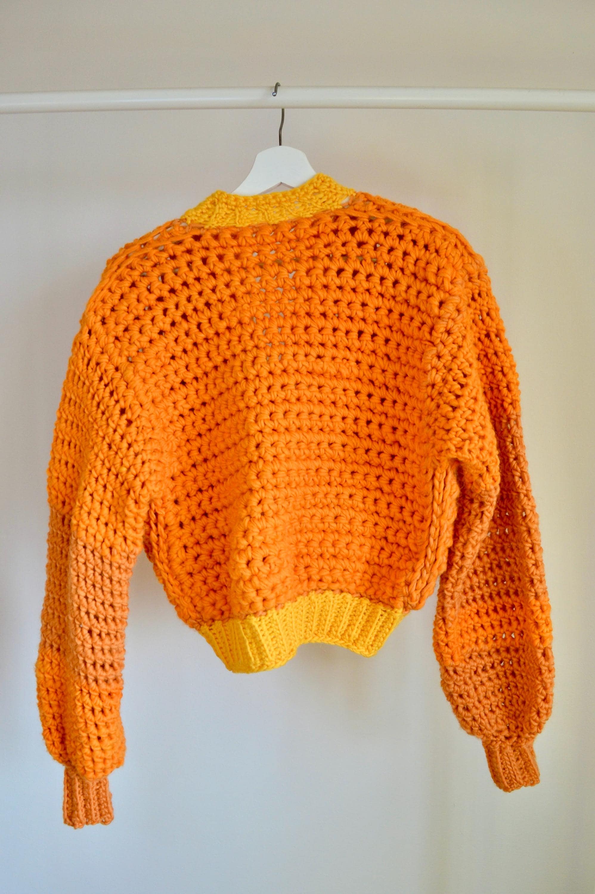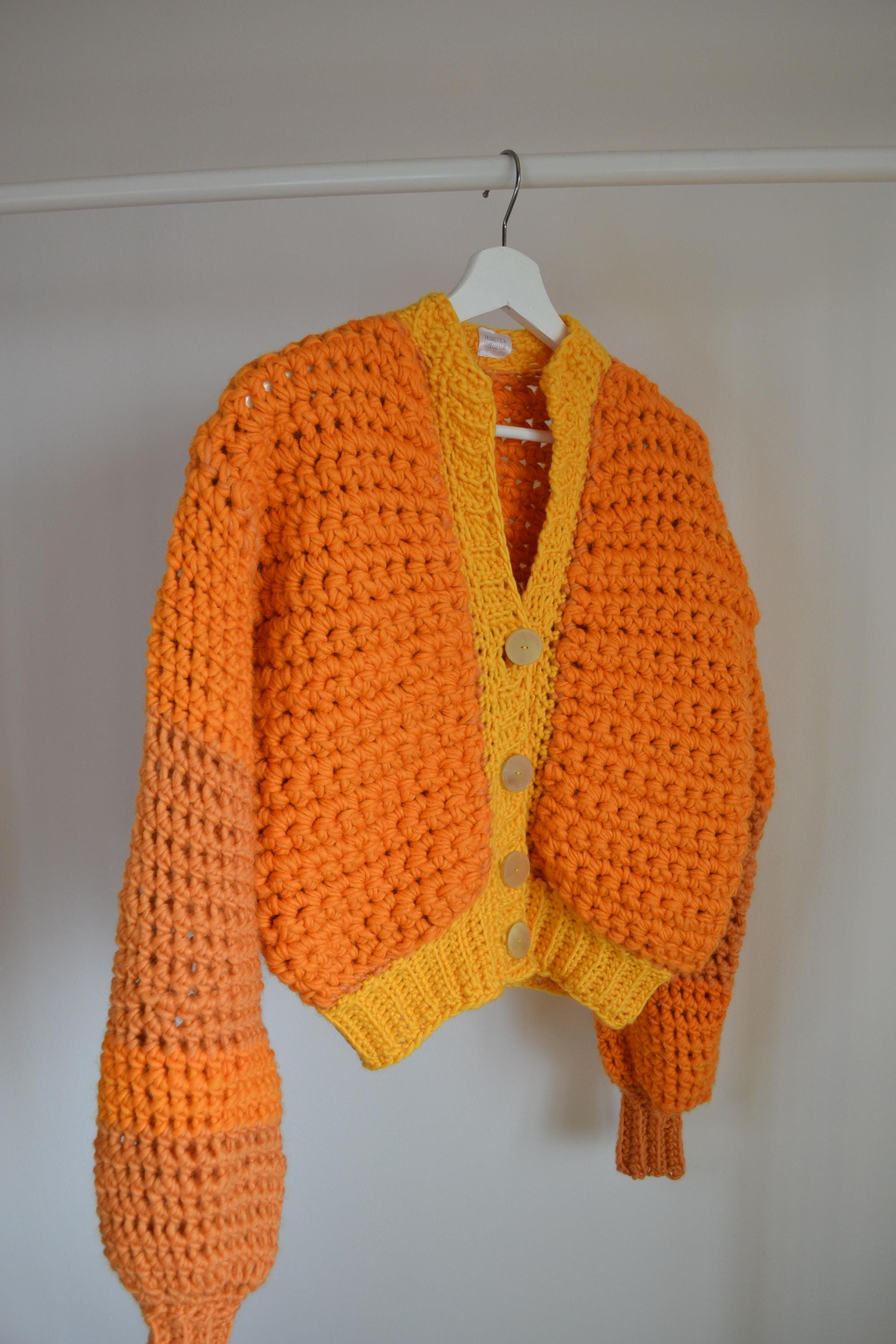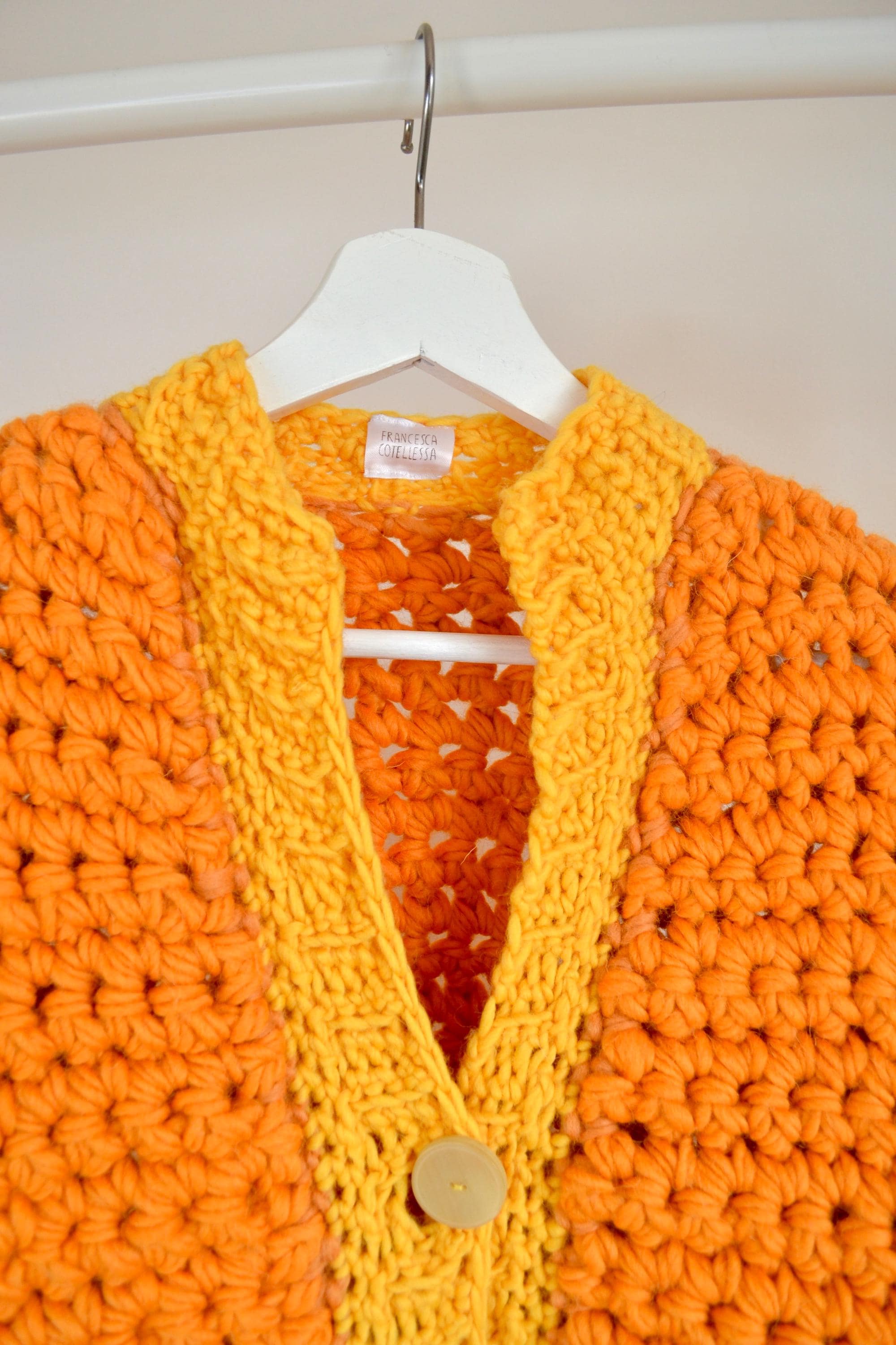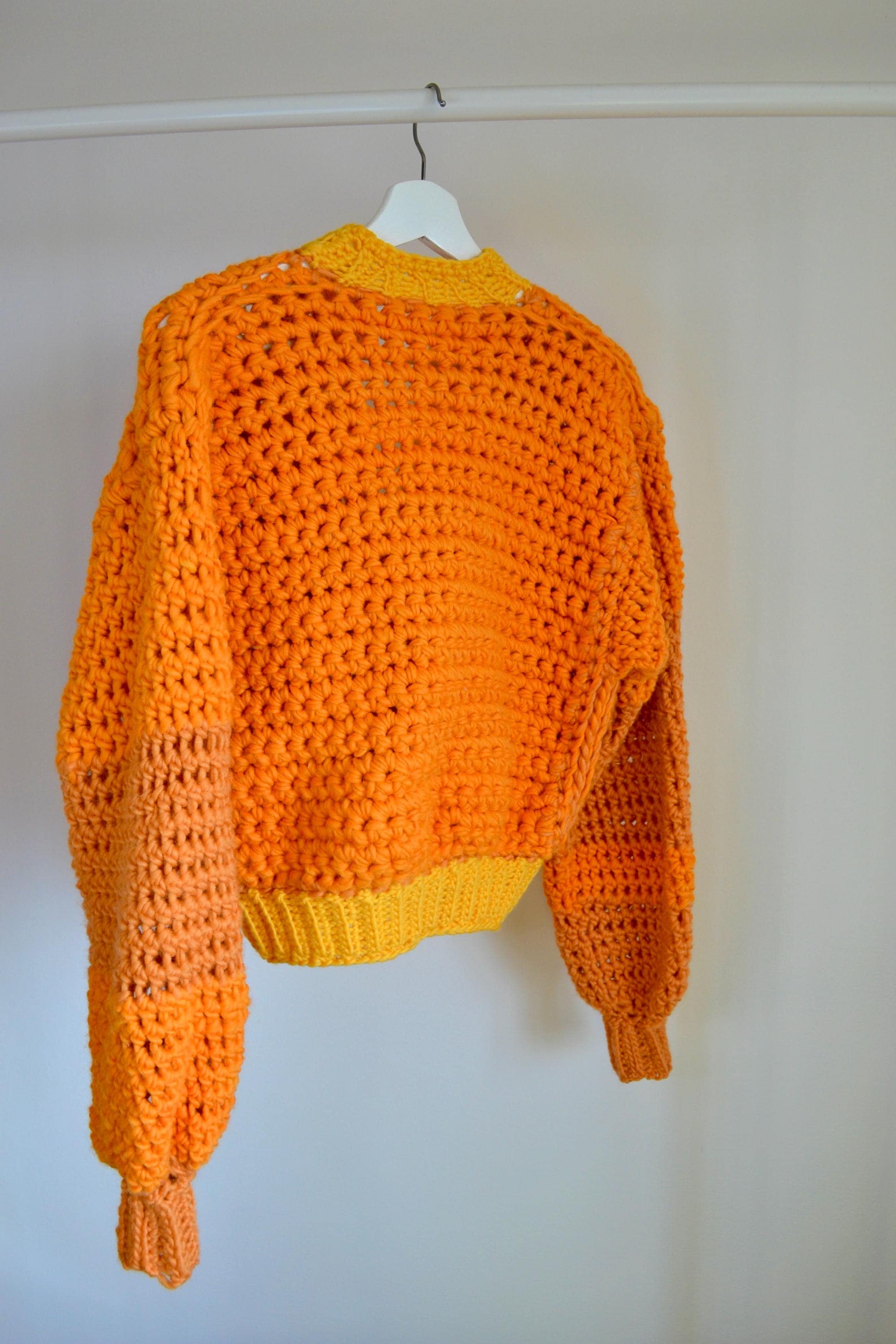 One of a kind piece♥️Crochet cardigan made with prestigious Peruvian wool yarn, very warm, bomber style can also be used as a jacket.One size fits allMustard yellow color with ochre inserts
