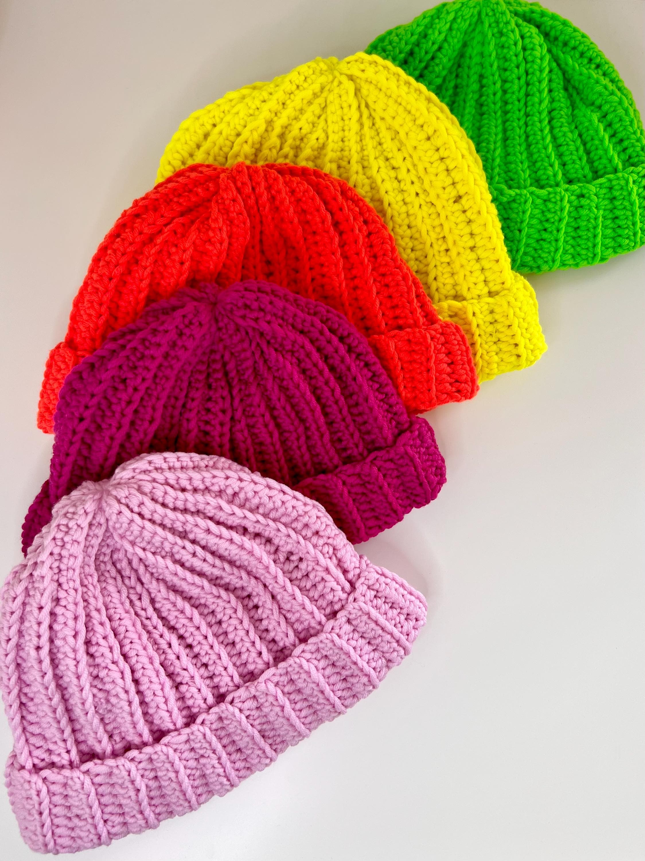 100% pure merino wool hats, caps, beanies, very warm and soft, one size fits all, very elastic.In 5 colorful variations in fluorescent shadesHighly original and high qualityCrocheted with ribbed workmanship