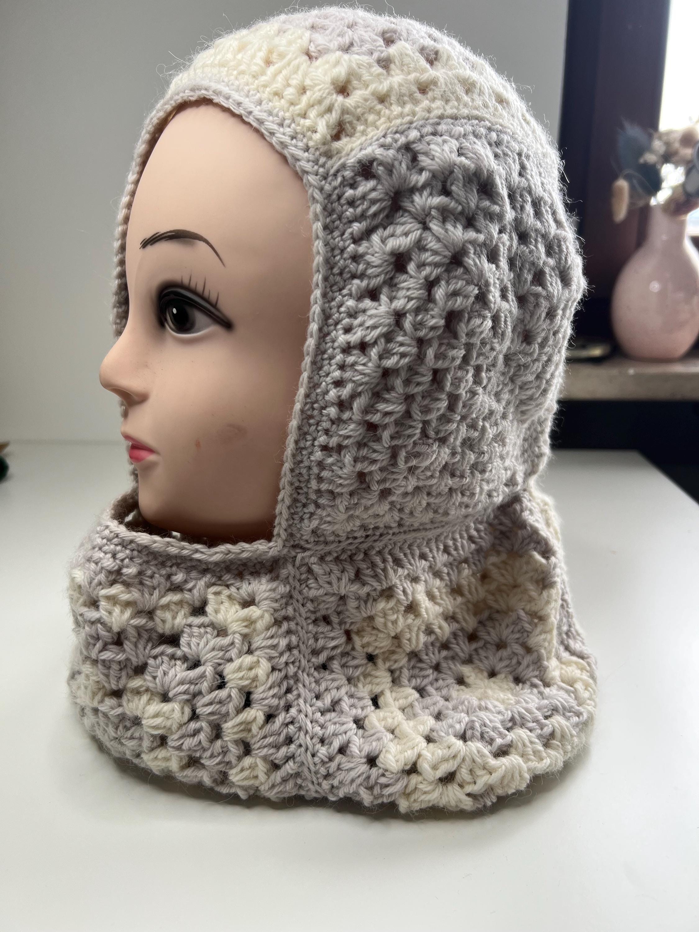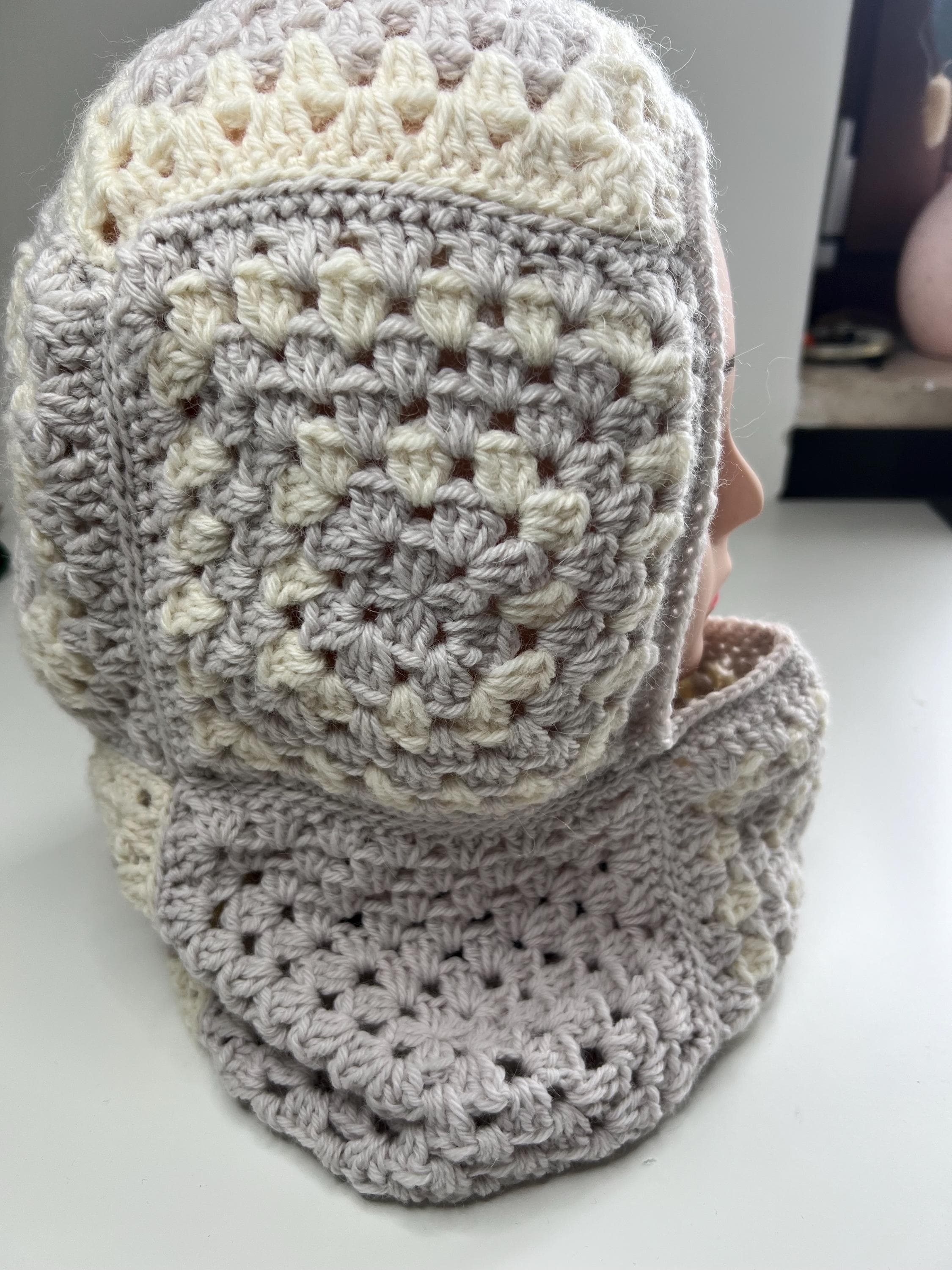 Very warm balaclava/balaclava in 100% pure virgin wool crocheted in granny square styleSoft and very warmPerfect for the winter coldOriginal and in line with current trendsOne size fits all and is quite stretchy