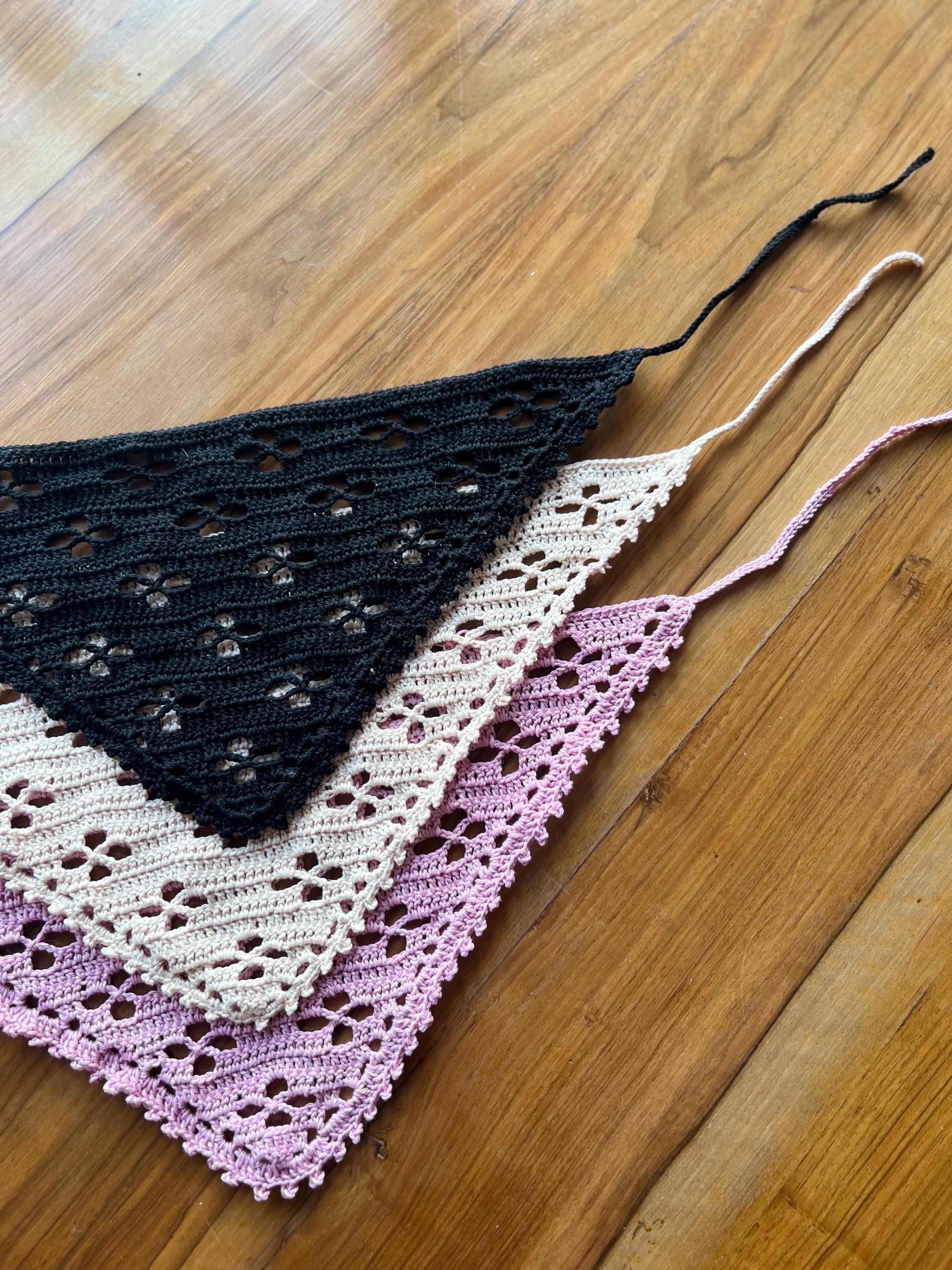 Bandanas made of 100% cotton yarnWith floral patternPerfect for sheltering from the summer sun on the beach, while staying coolOther colors can be made to order